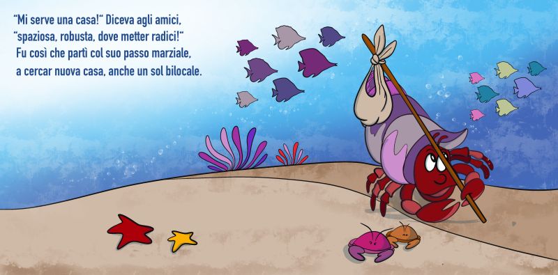 Un piccolo paguro dai grandi occhi gialli è alla ricerca di una nuova dimora. Tra conchiglie, calze abbandonate e strani oggetti metallici, il mare nasconde più di quel che sembra.